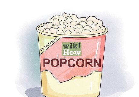 Choose plain popcorn. Popcorn can be a healthy snack, but many prepackaged versions contain large amounts of added salt. Instead of movie theater butter or salted popcorn, choice plain microwavable bags. You can buy the plain kernels and pop them in an air popper for even fresher popcorn. If you want to add some flavor, consider sprinkling cinnamon over it for something sweet or adding a dash of garlic or seasoning salt.