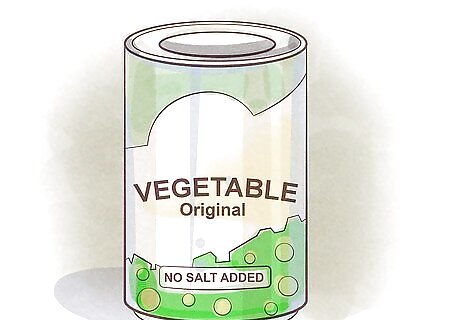 Look for “no salt added” canned vegetables. Canned vegetables are generally high in sodium. To cut the salt from these, buy canned vegetables that say “no salt added” on the label. That ensures you are getting the vegetable without added salt. If you want a little bit of salt to taste, you can add a small amount of salt when you put the food on the plate. Consider cooking your vegetables with spices and herbs to eliminate the need for added salt. For example, try adding rosemary and thyme to green beans or ginger and sage to carrots.