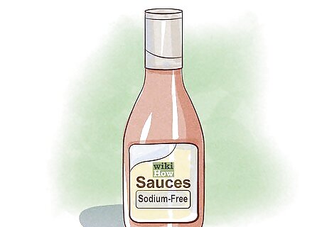 Buy sodium-free sauces. Many sauces, such as pasta sauces, have a lot of added sodium. Most brands offer a sodium free option. If you can’t find sodium free, you may find a reduced sodium option. Make sure to check the serving size. Reduced sodium varieties may not be low in sodium if the serving size is smaller than what you would eat.