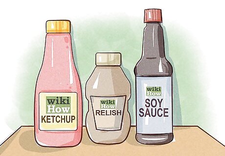 Use caution with condiments. Condiments are pantry staples, but they can be loaded with salt. Read the labels carefully and compare brands and types before buying. If available, get a reduced sodium, low-sodium, or no-sodium added variety. Condiments may include ketchup, mustard, dressing, olives, pickles, relish, dips, and soy sauce. Consider leaving the condiments off your food completely.