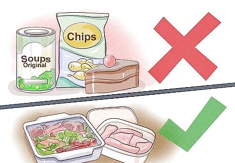 Get rid of processed foods in your pantry. Sodium is found in high amounts in most processed foods. Many people fill their pantries with processed food, so if you’re trying to cut the salt, consider getting rid of the processed food in your pantry. If you still want to use processed food, check the sodium content to choose lower sodium options. Processed food that contains added sodium includes chips, canned soups, bread, broth and stock, snack cakes, cookies, pastries, cereals, and juice.