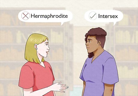 Use the right words. It is important to use the correct terminology. In the past, it was common to refer to intersex people as "hermaphrodites". Unfortunately, this inaccurate term is still sometimes used today. Be aware that language changes with society. Intersex is the proper term, so take care not to use outdated terms that could offend someone. Intersex people often, but not always, identify with the challenges of the LGBT population. Sometimes it is even called LGBTI, which stands for lesbian, gay, bisexual, transgender/transsexual, and intersex. Make it a point to use the proper terms for all people. If you need help, ask someone which language they prefer.