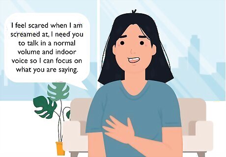 Share your feelings. Use “I” statements to minimize defensiveness. You are asking this friend to own the behavior so you need to own how it makes you feel. An “I” statement could be: “I feel scared when I am screamed at, I need you to talk in a normal volume and indoor voice so I can focus on what you are saying.”