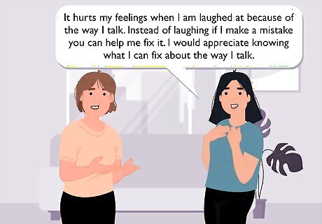 Offer a suggestion for how your friends can correct mean behavior. Remind this friend that you like him or her and want to reconnect in a positive way. You can help resolve the mean behavior by offering an example of how you would like to be treated. For example, you might say: “It hurts my feelings when I am laughed at because of the way I talk. Instead of laughing if I make a mistake you can help me fix it. I would appreciate knowing what I can fix about the way I talk.” Be aware that you can make suggestions, but the friend is the only one who can change the behavior. If he or she is not willing to change, there may not be a friendship worth saving. Regardless of if the friend ends up changing their behavior, sticking up for yourself and communicating that you feel disrespected is important in preserving your sense of self-worth and building healthy self esteem.