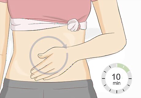 Massage your abdomen with oils for 10 minutes. Lay back, squeeze some oil onto your hands, and massage your stomach in a circular motion from right to left. If you’ve been constipated, then your abdomen may be tender. Don’t press too hard, and only use as much pressure as you’re comfortable with.