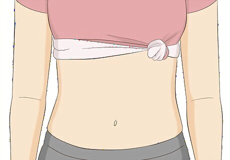 Pull up your shirt and expose your stomach. Roll your shirt up so it’s just above the bottom of your ribcage. Make sure it’s out of the way, because oils can stain your clothing.