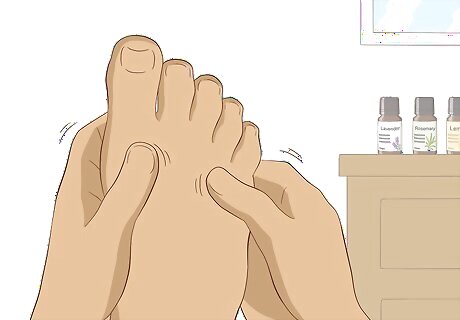 Massage your feet with oils to reduce stress. Applying pressure to your feet is known as reflexology. More research is needed to establish how effective it is, but since it helps reduce stress, it could improve your constipation. Since you’ll be using the oils on your skin, make sure they’re diluted. You could also visit a professional reflexologist for a more comprehensive treatment.