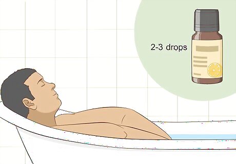 Soak in a bath with diluted essential oils. A warm bath is a known treatment for constipation, and adding a 2-3 drops of essential oil to the water could provide a more therapeutic effect. Soak and inhale the scents for 15-20 minutes to loosen your bowels. You could also massage your abdomen while you’re in the bath. This can help your bowls move.