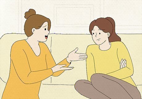 Stay engaged in the conversation, even if it gets heated. Nod along while they are talking, keep your arms and legs uncrossed, and make eye contact with your parents while they are talking. Using your body language to let them know you are listening will encourage them to talk and make you seem cooperative and calm. Looking engaged will help you seem mature and reasonable. Don’t sigh or use gestures that show that you are frustrated. Don’t fold your arms or legs-- this makes you appear closed off. Don’t doodle, look down at your hands, or fidget with something while they talk. Give them your full attention.