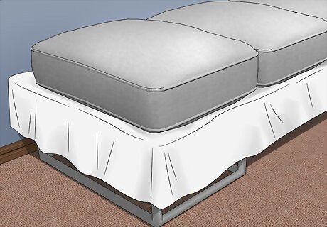 Add a bed skirt to the daybed frame to make it look like a traditional bed. Bed skirts can make a daybed look like a more traditional bed. This works especially well for daybeds in guestrooms or other areas where they will serve as space-saving sleeping surfaces. You can find daybed bed skirts from some home goods stores, as well as online. If your daybed is an irregular size or shape, you could also try making your own.