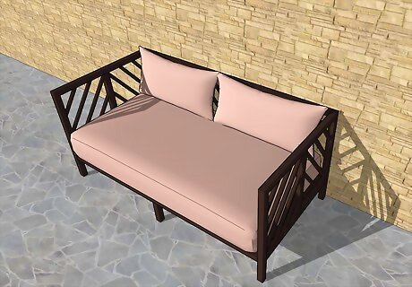Try a metal daybed to add comfortable seating outside. Daybeds can give you a comfortable spot to lounge and relax outside. Pick one with a metal or sealed, weather-resistant wood frame to help it last through different kinds of weather conditions. You will also need a weather-resistant mattress or cushions. You may be able to find outdoor daybed mattresses online or from stores that specialize in outdoor furniture. Otherwise, you can use weather-resistant seating cushions meant for outdoor sofas and chairs.
