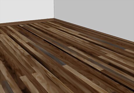 Choose dark flooring for a rugged look that draws the eye up and out. A dark floor will help to make a room seem more severe or rugged. This is a great option if you are going for a bold or rugged look. Dark flooring also helps you to keep the focus on the walls and ceiling in a white room, which can make the room seem bigger. Look for laminate flooring or carpet in shades of black, dark brown, plum, and navy. You could also use concrete floors for a bold, industrial modern look.