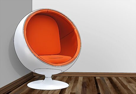 Add a piece of accent furniture to create a focal point in the room. You can get away with some really bold furniture options when you have white walls. Try getting a piece of furniture that makes a statement and place it in a white room so that visitors will be drawn to it. Place an orange mod-style chair in your living room for a striking piece that everyone will want to sit in. Select a bed with an oversized headboard for a dramatic addition to your bedroom. You could also choose a canopy bed and decorate it with flowing white linens to add a touch of softness to the white room. Choose a clear glass dining room table to create the illusion of more space.