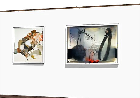 Hang artwork or family photos on white walls to showcase them. Since white walls serve as a great backdrop for artwork, you can take advantage of this in your home by hanging lots of pictures, paintings, or other framed items on the walls. Let the white walls lead the eye to the artwork or pictures. Make sure to space out the pictures so that there will be at least 6 inches (15 cm) of white space between each of them. If you have a large picture or piece of artwork, then choose a wall to hang it on and don’t hang anything else on that wall. You might even leave the other walls bare so that nothing in the room will compete with this picture. For a fun, bold look, you can create a “gallery wall” with 3 or more art pieces or photographs (or even a mixture of both). You could also hang a decorative tapestry on the wall. This could be a woven macramé, an ornate rug, an actual tapestry, or even a beautiful scarf or shawl. In addition to being decorative, the cloth can also help reduce echo in the room.