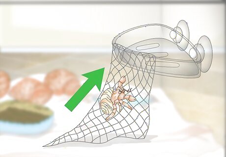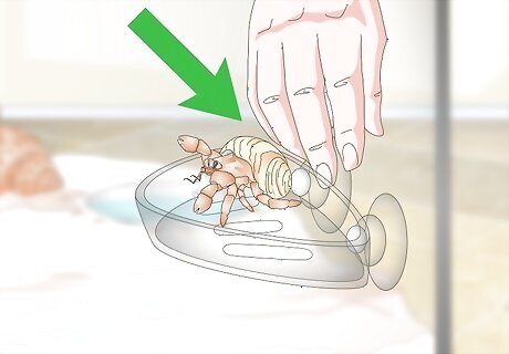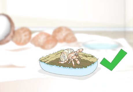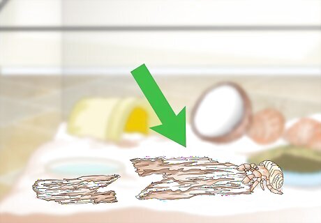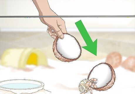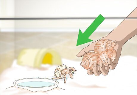 Place some sanitized shells on the substrate. To allow your hermit crab to move to a new shell, you should add three large shells. Hermit crabs love housing options. Each shell should be a bit larger than the crab’s current shell.