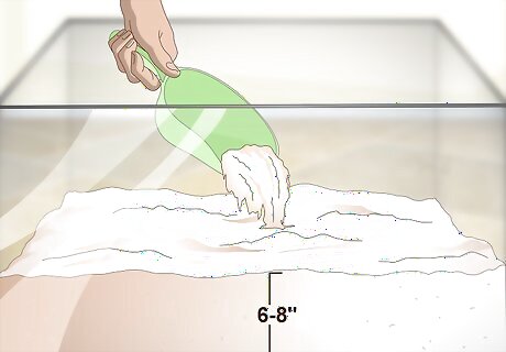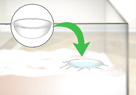 Add enough substrate for your hermit crab. You’ll need to add the right depth of substrate for the size of your hermit crab, such as six inches of sand for a very small crab. After adding the substrate, you should moisten it with a watering can. The sand mixture should be about as moist as the sand you would use to build a sand castle. If your hermit crab is 1’’ or less, you can add six inches of substrate. if your hermit crab is 1 5/8’’, you can add between 6’’ and 8’’ of substrate. Add between 8’’ and 10’’ for a 2 ½’’ hermit crab. Add 12’’ or more for a jumbo 3’’ hermit crab.