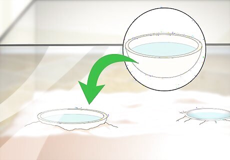Install a shallow freshwater container. Place a container with spring water or dechlorinated water in the tank. To create the illusion of a lake or stream shoreline, you should place the dish in a low area of the tank. Place the container so that your crab can get in and out easily. Since your hermit crab will be drinking the water, you want to make sure it is dechlorinated and free of contaminants. You can get ceramic or decorative water dishes at your local pet store. Make sure they are large enough to fit your hermit crab, since they like to hang out inside the dishes.