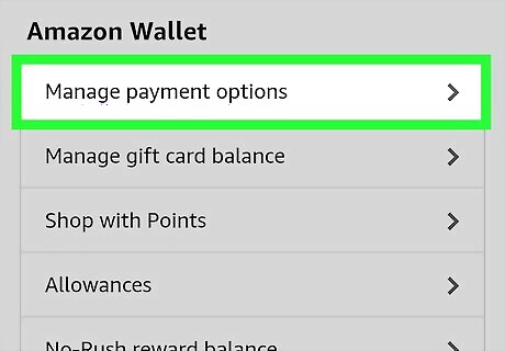 Scroll down and tap Manage payment options. It’s under the “Amazon Wallet” header.