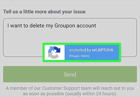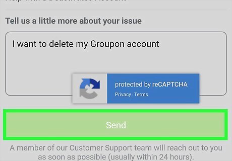 Tap Send. It’s the green button at the bottom of the page. Your request is sent to Groupon. You’ll receive a confirmation message once your account is deleted.