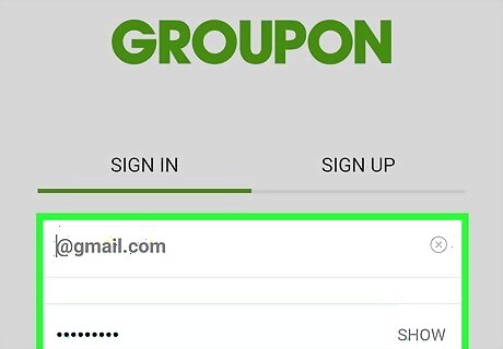 Enter your login details and tap Sign In. This logs you into your Groupon account. If your Groupon account is connected to your Facebook or Google account, tap one of those buttons to sign in with that account.
