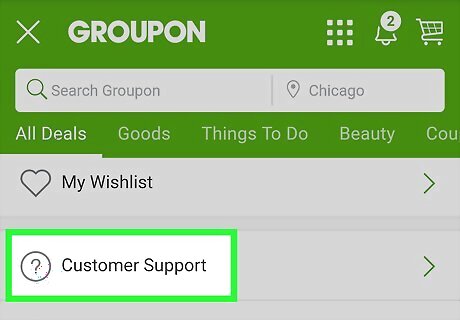 Tap Contact Customer Support. Groupon will redirect you to a screen with several options.