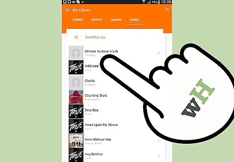 Go to your music library. Tap the three-dot button on the top right corner of the device’s screen to view the app’s menu panel. Select “Library” from the menu panel to go to your music list.