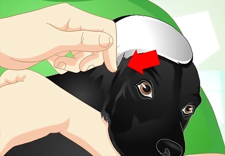 Assess your dog for symptoms of a ruptured eardrum. Before you put medicine in a dog's ear you must first make sure you won't harm your dog’s ears by doing it. Therefore, before placing any medication in the dog’s ear you must make sure the eardrum is not damaged. Never place medication in a dog showing these signs, as they can indicate a possible ruptured eardrum: Unusual head tilting Loss of balance (tipping to one side or falling down) Vomiting Pain when the ear is touched Drainage of thick and/or bloody fluid from the ear