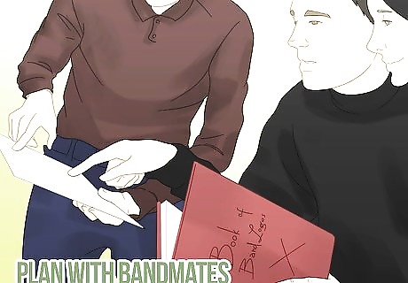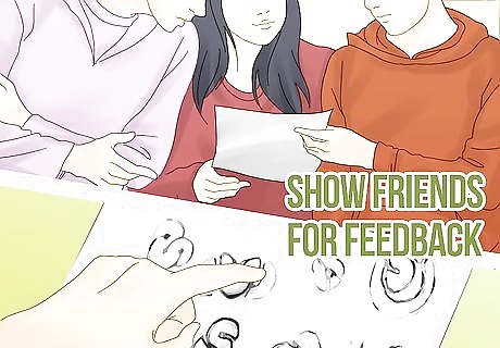 Show your friends or bandmates. Spend a while brainstorming with your bandmates and trusted friends about the designs. Take any feedback somebody has seriously. Have each member choose their favorite out of the whole series of designs. Isolate each design that was chosen as a favorite from the band. Line up the chosen designs and have a vote if anybody likes somebody else’s choice more than theirs. Hopefully some of your band members will discuss what they like or dislike about your designs. Ask them what works if they don’t bring it up.