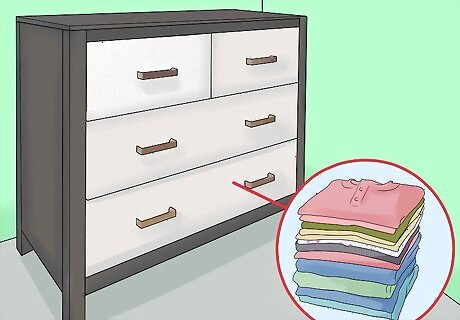 Maximize the storage space. There should be one clothing storage drawer for each possible occupant. If you design a motel room that sleeps four, there needs to be a minimum of four clothing storage drawers. Install a low dresser unit directly across from the bed and below the TV. Horizontally-oriented dressers will streamline the room. Do not install a wall-mounted dresser or armoire. These are more difficult to replace and modify than smaller, more mobile dresser units. Consider using under-bed dressers if space is limited.
