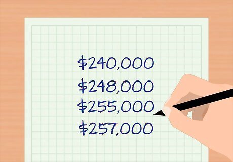 Use the adjusted sales prices of comparable prices to estimate your home's market value. Once you've adjusted the sales price of comparable homes, you should be able to make an educated guess on your home's market price. For example, if you chose 4 homes and they had sales prices of $240,000, $248,000, $255,000, and $257,000, you can make a good estimate that your house will sell somewhere between $240,000 and $257,000. When coming up with adjusted sales prices, only use the final selling price of a home. The asking price of a home doesn't tell you anything; sellers can ask anything they want, but it doesn't mean they'll get it. Use only prices that houses actually sold for. This will tell you the market value of the area you live in.