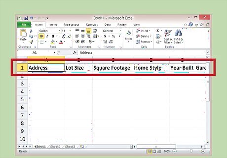 Make a spreadsheet on your computer. You'll have to organize a lot of information once you get a list of recent sales, and the most efficient way to do this is with a spreadsheet. Make a separate column for all the information about properties, including address, lot size, square footage, home style, year built, garage size, number of bedrooms and bathrooms, condition of the property, and selling price. Start by plugging in your own house's information, though of course leaving the selling price section blank for now. You'll then plug in other properties as you asses the list of recent sales you've acquired. If you've never made a spreadsheet before, read Make a Spreadsheet in Excel. If you're unaware of the square footage of your own home, look at your real estate documents like closing papers. The square footage will be listed on the appraisal report of your house. You might also be able to find it in county records, but the appraisal report will be more accurate. If you can't find your home's square footage, you can get a rough estimate by measuring the outside of the house. In feet, measure the length and width of the house and multiply these two numbers. Subtract the garage, enclosed porches, hallways, and closets. This will give you a larger number than the actual square footage. You could get a more accurate estimate by finding the area (length x width, just like with the outside) of each interior room. Then add these numbers together.