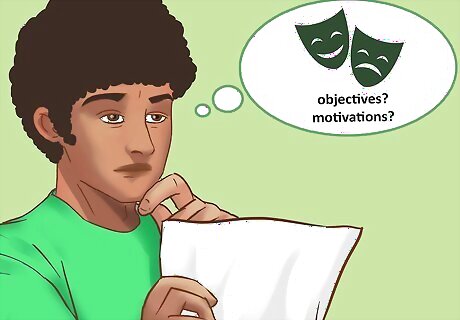Read the script more than once. Read the whole script at least once. Read the prologue, epilogue, the stage directions, and your lines as well as the other characters’ lines. As you read the script for the second and third time, highlight your lines and any important information given about your character. Highlight information about your character’s age, where they live, their name and upbringing, likes and dislikes, friends, family, favorite foods and places, as well as their political and religious viewpoints. You may be able to find this information through your character’s and other characters’ lines, as well as context clues.