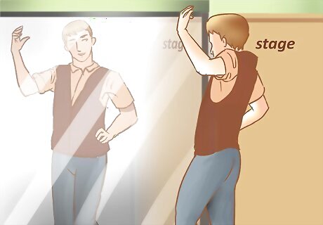 Practice your stage entrances. Before entering the stage, really think about where you have been before your entrance. This will help you channel genuine emotions and reactions once you get on stage. Then practice different stage entrances to see which one fits the scene best. For example, if you were supposed to be at the shopping mall before your entrance, think about how your shopping experience went. Did you find everything you were looking for? Are you tired from shopping? Did you run into an old friend or ex-boyfriend at the mall? Asking questions like these will help you set up an appropriate demeanor for your stage entrance.