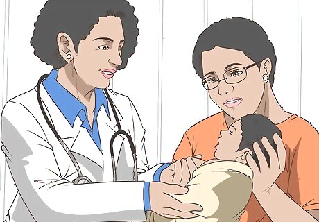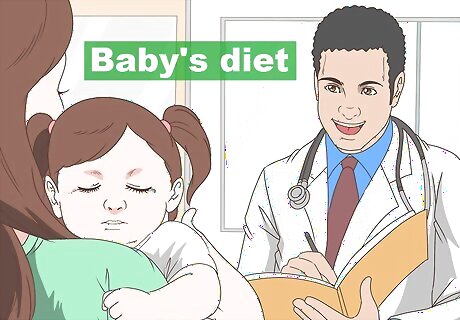 Talk with the doctor about your baby's diet. Let the doctor know what your baby is eating. For example, if your baby is formula fed, you should be able to give the exact name of the product you're giving. If you're breastfeeding your baby, the doctor will probably ask what you typically eat. If you've introduced solids, tell the doctor what foods your baby eats and if they've had any allergic reactions to foods. The doctor may want you to feed the baby while you're in the office. You may need to bring formula or nurse the baby. This will give the doctor a chance to look for any signs of irritation or discomfort that your baby might have after eating.