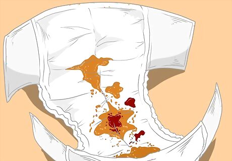Look for bloody stools. Check your baby's diapers for blood. Bloody stools are one of the most common signs of allergic colitis in babies between 2 and 6 weeks old. There may only be a little blood or spotting, but bloody stools could lead to other health complications. Know that bloody stools could be a sign of, or lead to, other health problems. If your baby is experiencing heavy bleeding, the cause may not be allergic colitis. The doctor will want to check your baby for tears in the perianal area or other issues.