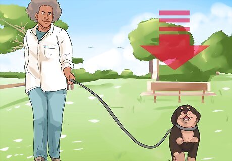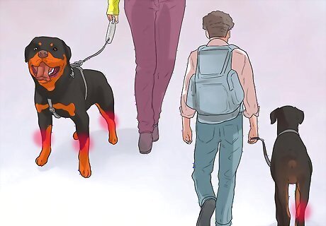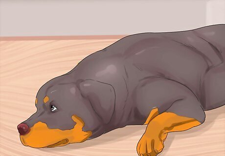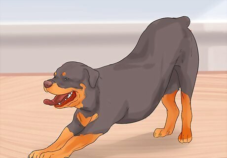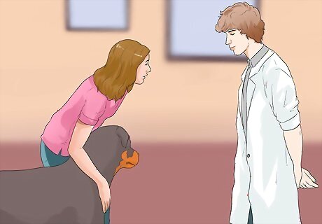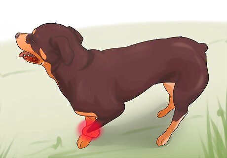 Take your Rottweiler to the vet. If your dog shows signs of arthritis, take her to the vet. The vet will watch how the dog stands up from lying down, copes with stairs, and walks to get an idea of how mobile she is and which leg or legs are affected. The vet will also feel the joints for heat and swelling, and then bend and extend each joint to see if it moves freely or movement is restricted.