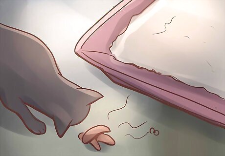 Check for poop outside the litter box. If your cat has IBD, pooping outside of the litter box may be the first symptom you notice. Because IBD commonly causes diarrhea, your cat may not make it to the litter box each time it needs to poop. Don’t punish your cat if you see poop outside of the litter box. Clean it up without making a fuss.