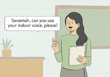 Avoid using the word “don’t.” If it seems like the kids in your group aren’t listening to you, make sure you’re phrasing your instructions clearly enough. Tell them what you want them to do, not what you don’t want them to do. Otherwise, they may get confused. For instance, say, “Savannah, can you use your indoor voice, please?” instead of “Savannah, don’t talk so loudly.”