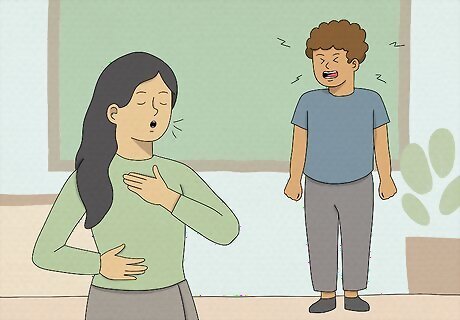 Stay calm and collected. When a child acts up, don’t lose your temper with them, even if you’re frustrated. Speak in a low voice, and use calm movements. By keeping your cool, you’re modeling good conflict resolution skills while letting the child know you’re in control of the situation. Losing your temper might get kids to behave temporarily, but it also sends the message that you aren’t really in charge. If you need to, pause and take a deep breath to compose yourself before dealing with a misbehaving child.