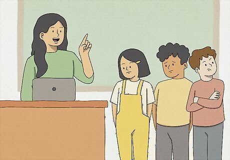 Make your consequences fair to the whole group. Don't let a few bad apples spoil the whole bunch. It's unfair to punish the entire group of kids if a few are acting up. In such cases, it may work to give the misbehaving kids an extra assignment to dissuade talking or playing. Other kids might work silently or go outside for recess. When misbehaving kids see others getting free time or special treats, they are more likely to clean up their acts. If the other kids don't get any special treatment, there's no motivation to behave well. Constantly calling out a single child or solely blaming them for misbehavior can make the child feel isolated from the rest of the children. They may start thinking that they do not fit in, and it may create resentment.