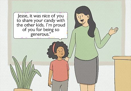 Encourage good behavior. Notice when a child in your group does something thoughtful or kind. Give them a high-five or a few words of praise, and tell them why you’re proud of them. Positive reinforcement will make kids want to continue behaving well. For example, say, “Jesse, it was nice of you to share your candy with the other kids. I’m proud of you for being so generous.”