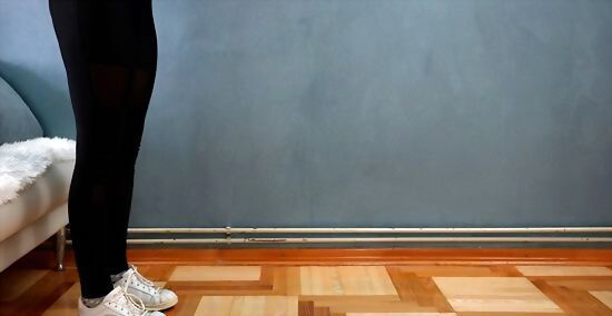Stand with your feet hip-width apart and your hands at your sides. Keep your weight evenly distributed and your feet at just about hip-width apart so you’re nice and balanced. Let your arms hang straight and loosely at your sides.