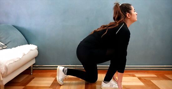 Reach forward when you lunge to target your glutes. Stand up tall, step 1 foot forward, and sink your hips so your legs are at a 90-degree angle. Lean your body forward and reach your hands to touch the floor on each side of your front foot. Then, push off your front leg to return to the starting position and complete a rep. This movement takes the load off of your lumbar muscles, making it easier on your back. It also forces your glutes and hamstrings to do more work. 3 sets of 8-12 reps is a great glute workout.