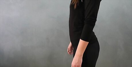 Take a big step forward and clasp your hands in front of you. Step forward with 1 foot so you’re standing in a split stance. Bring your hands in front of your chest and clasp them together to help you balance. You can also place your hands on your hips as an alternative.