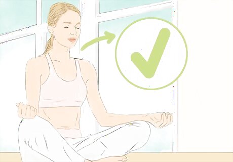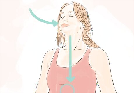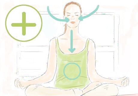 Get comfortable and breathe deeply. Try to find a quiet place where you'll be able to relax. Use deep breathing exercises, feeling the air pass through your nostrils and raising/lowering your abdomen. Sit in a quiet spot and eliminate as many distractions as you can. Silence your cellphone and close the door (if possible). Loosen any tight clothing so that you won't be restricted. Close your eyes and concentrate on your breathing.