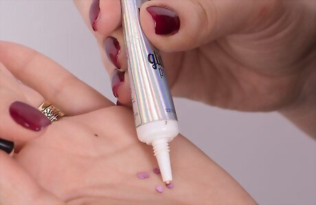 Apply glue to the backs of the sequins. Pick up your sequin, or partial sequin, with your tweezers. Carefully squeeze your tube of eyelash glue so that only a small amount of glue comes out onto the back of the sequin. Let the glue sit on the sequin for a couple of seconds to allow it to get tacky. It will thicken up a bit in the air, making it easier to stick to your skin.