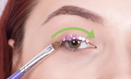 Press the sequins on your eyelid. Apply the sequin to your lid with the tweezers. Carefully place it on your lid exactly where you want it. After it's on the skin, press it firmly into place with the tweezers or your fingertip. Allow the glue to dry, and then blink a few times to double check that the sequin is securely in place. If you aren't happy with the placement of the sequin, you can start over. Simply peel the sequin off, clean your lid with a bit of makeup remover, and try again.