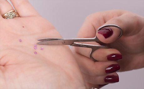 Cut your sequins as needed. There are several different ways to wear this look. You can cut your sequins into small pieces, which will allow you to create different designs and play with multiple colors. Another cool idea is to cut your sequin in half, applying one half to your top lid and the other half to your bottom lash line, so they come together when you blink. Finally, you can leave the sequins whole and apply a few in a line across your lid.