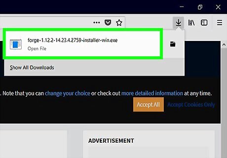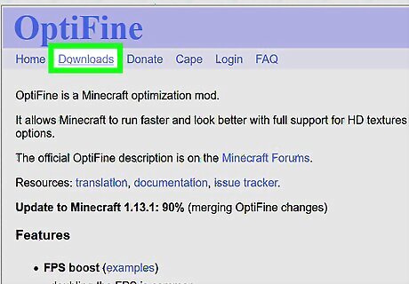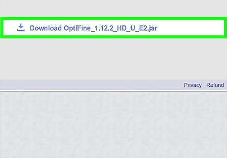 Download OptiFine for the version of forge you downloaded. Get the best version of OptiFine HD Ultra, but if you think your computer can't handle it, then get whatever version you feel comfortable with. To download the mod, click the link labeled "Download." This will take you to an AdFly, which will take you to one of OptiFine's custom download menus. A way to skip the AdFly is to click the link next to the download labeled "(mirror)." To download the mod, just click the link in the middle of the box.