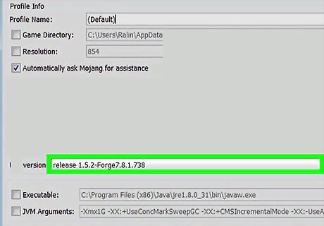 In the window that opens, find the box labeled "Use version:" and click it. In the dropdown menu, select the Forge Version of the game version you downloaded Forge for.